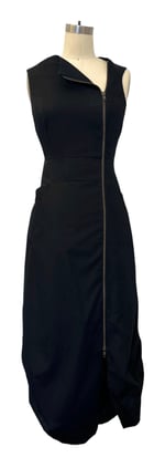 This black beauty features a modern asymmetrical neckline and a bold two-way diagonal zipper—because one way simply isn’t enough. The tailored fit is complemented by a cinching belt at the back (hello, perfectly snatched waist), while the softly draped hem brings just the right amount of drama. Polished, a little edgy, and effortlessly cool.
