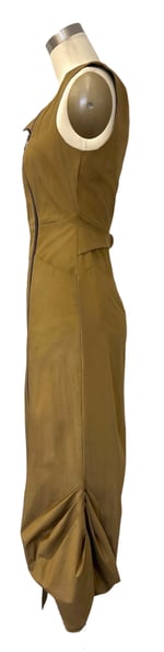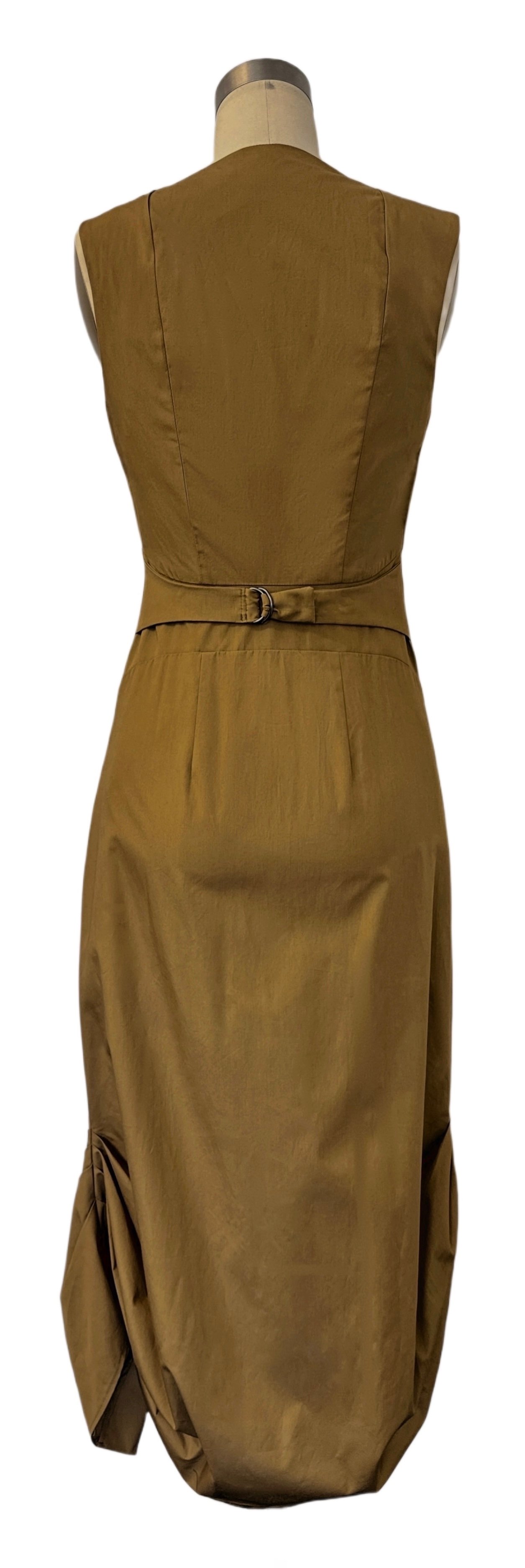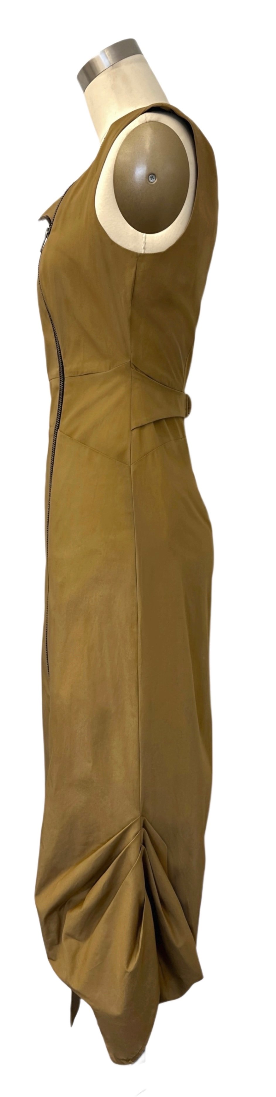 This golden ochre beauty features a modern asymmetrical neckline and a bold two-way diagonal zipper—because one way simply isn’t enough. The tailored fit is complemented by a cinching belt at the back (hello, perfectly snatched waist), while the softly draped hem brings just the right amount of drama. Polished, a little edgy, and effortlessly cool.