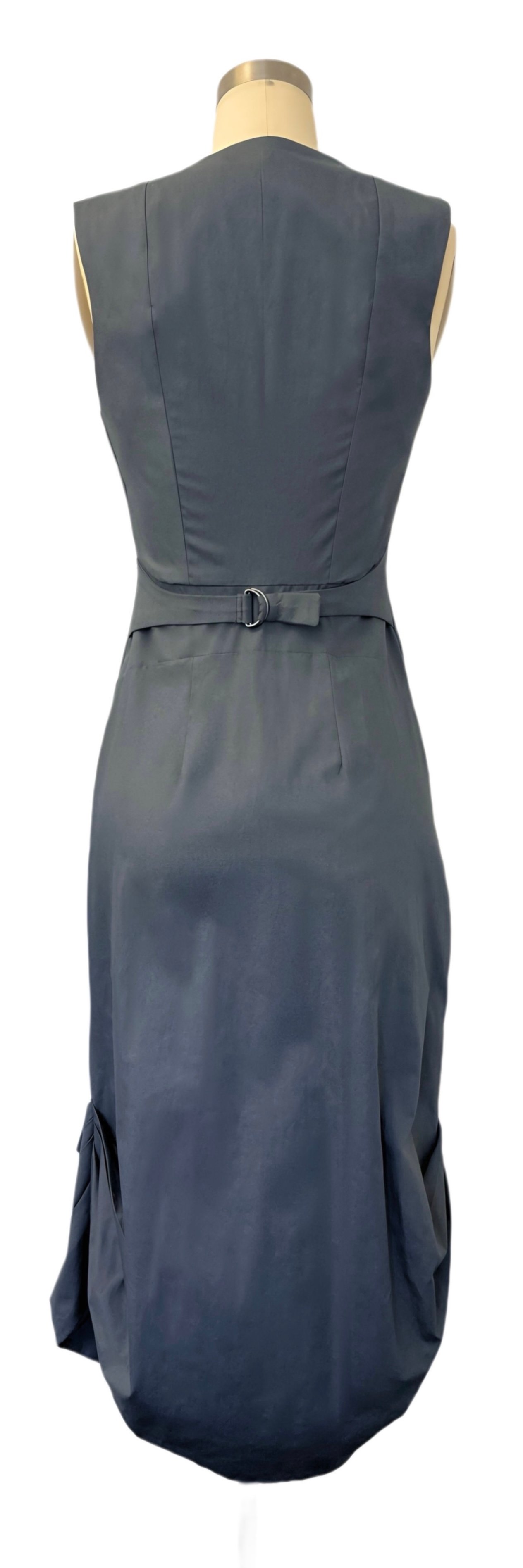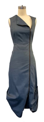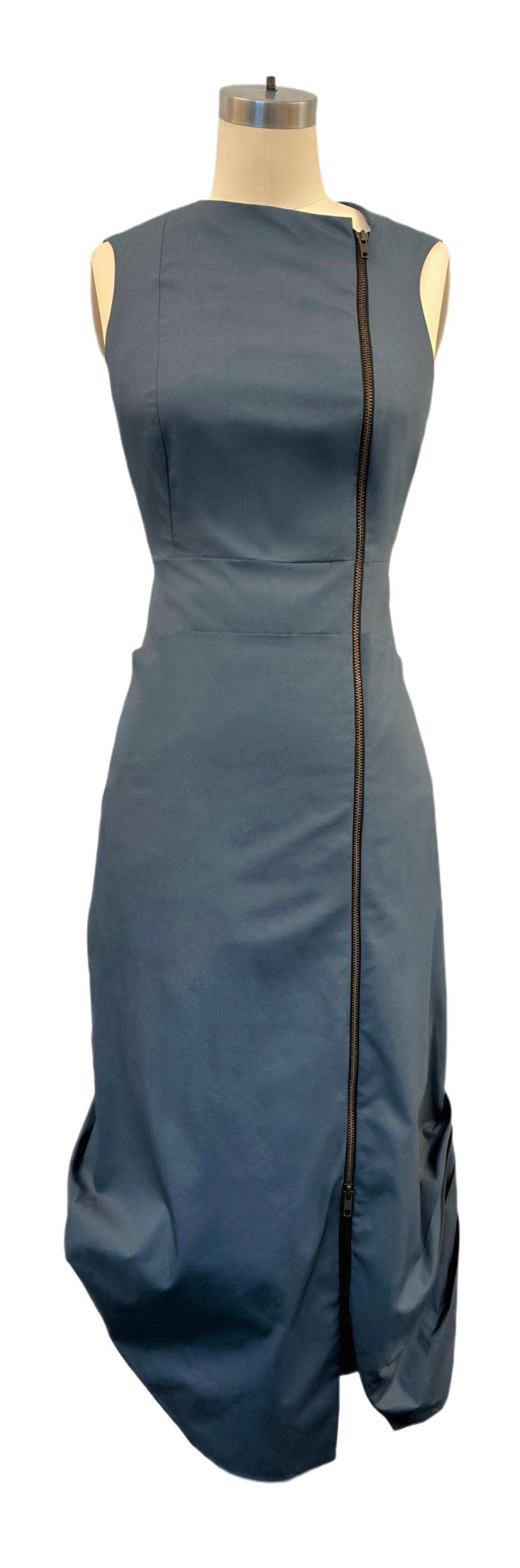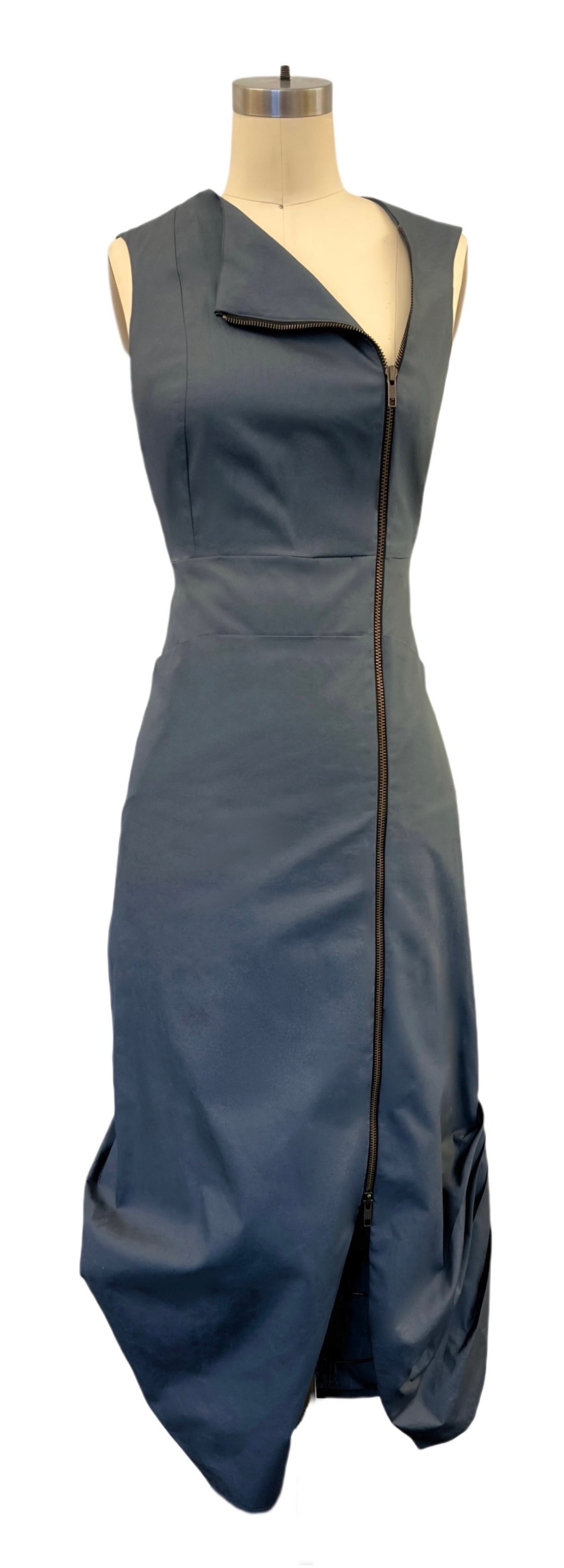 This slate gray beauty features a modern asymmetrical neckline and a bold two-way diagonal zipper—because one way simply isn’t enough. The tailored fit is complemented by a cinching belt at the back (hello, perfectly snatched waist), while the softly draped hem brings just the right amount of drama. Polished, a little edgy, and effortlessly cool.