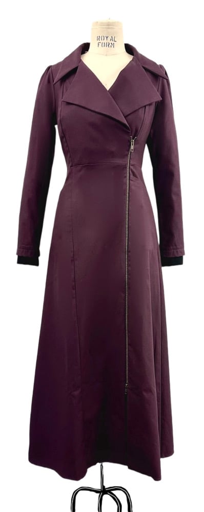 McClearon Jacket- Maroon asymmetrical Zip Trench jacket/Dress, Modern Goth with a Twist