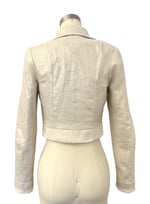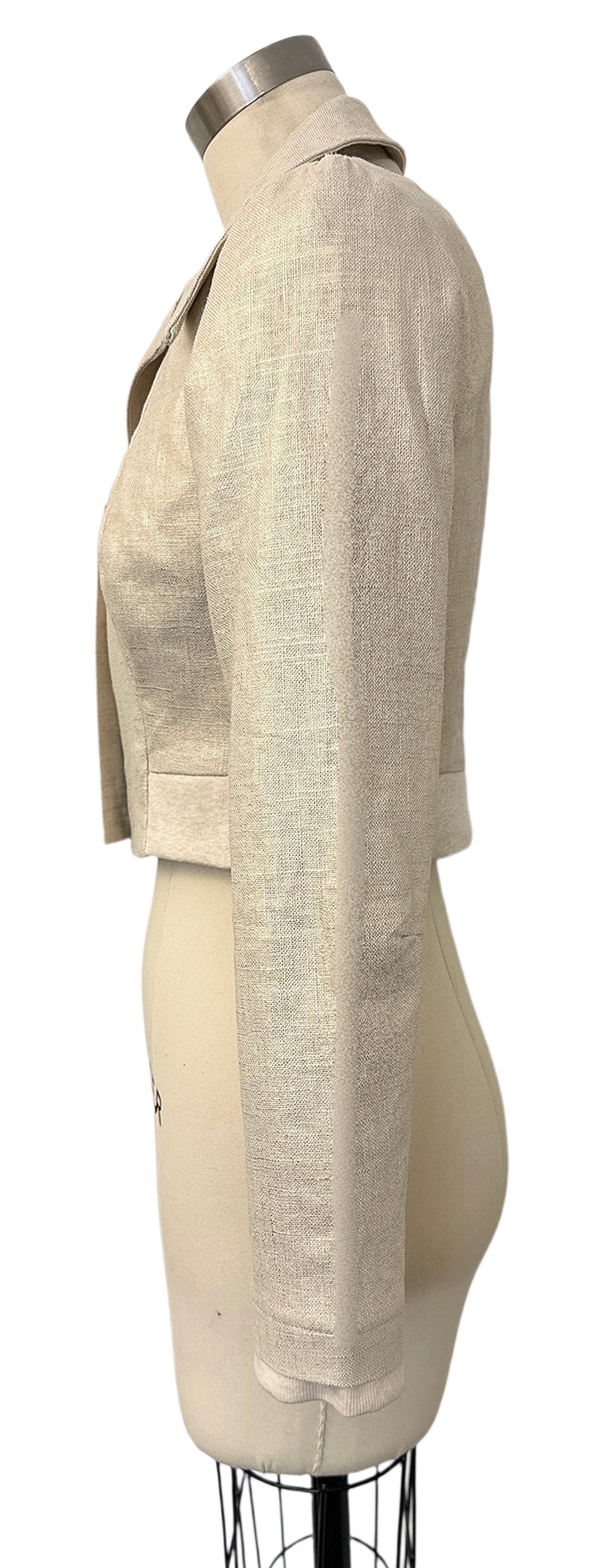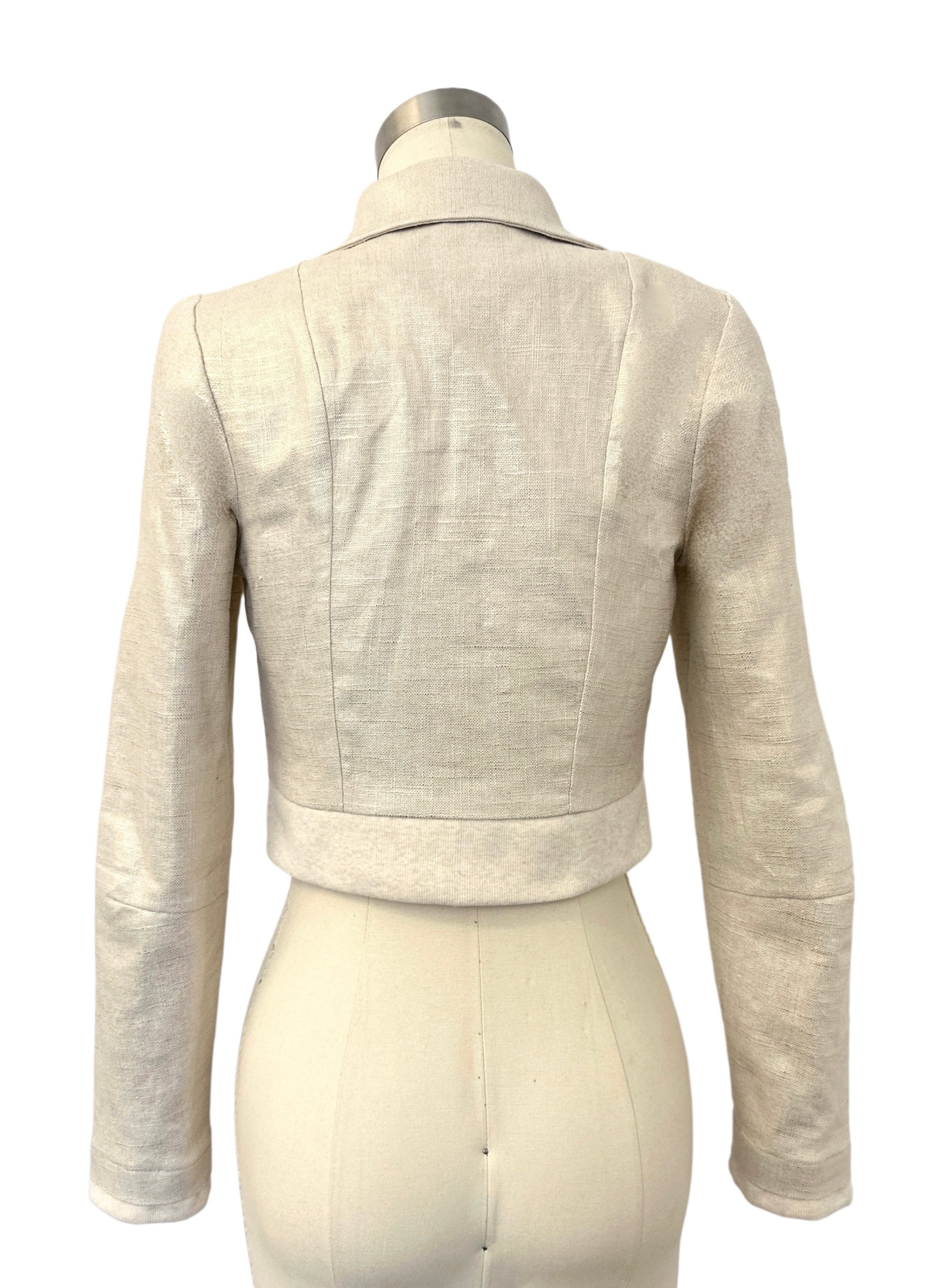 This jacket features a gold cross-hatched fabric that has a subtle shimmer.